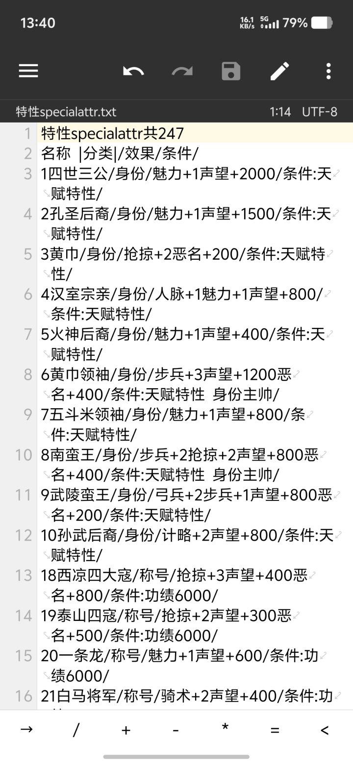 武将特性id,自己要用,找了一圈没找到,自己扒的,分享一下
