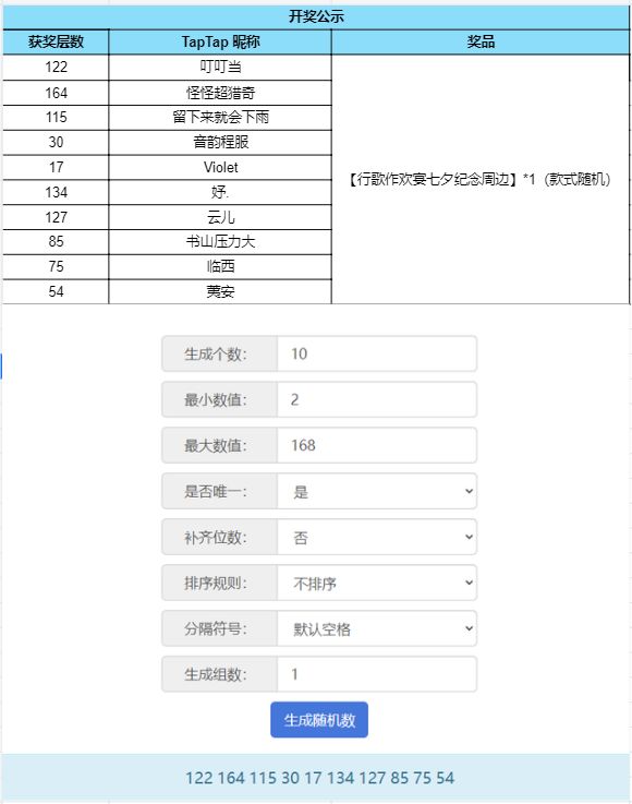 根据开奖结果显示,恭喜以下幸运的玩家们获得奖品:
