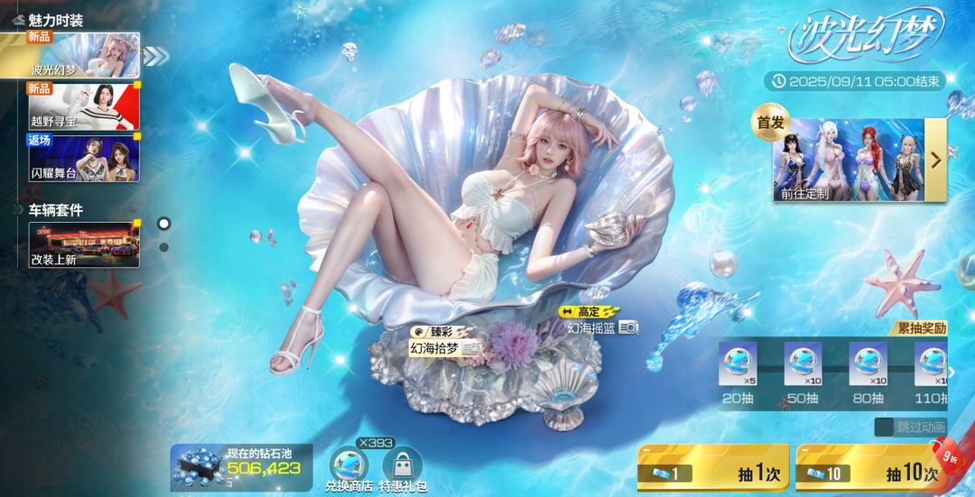 ❤8月7日维护后,车手们可参与[波光幻梦]时装抽奖活动,有机会获取全新[臻彩]品质时装“幻海拾梦”,[高定]座椅“幻海摇篮”,[高定]妆容“梦海回眸”,以及可用于修改时装“幻海拾梦”造型的[定制材料]等奖励!