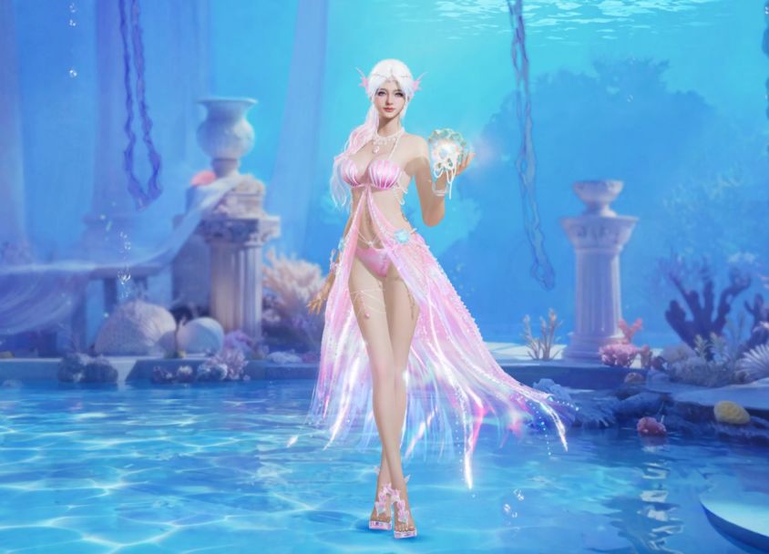 她踩着浪花走来,掌心托着一枚晶莹的海螺,朝你眨了眨眼: