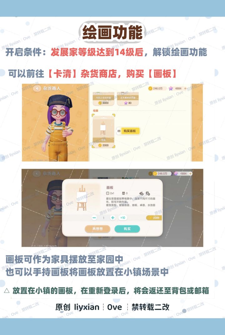 ① 绘画功能开启条件、画板购买和使用:图2-3