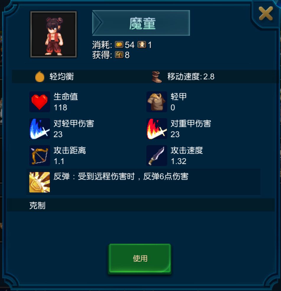 1.轻均衡单位且基础伤害23点,这意味着,30级铭文的魔童无论对轻还是对重伤害都能超过25点的关键伤害线,配合上在一阶兵中还算可以的1.1攻击距离,这算是非常明显的优势,只要有30级铭文,就能让魔童无论进攻还是防御都有十分明显的优势,当然,1.32的近战兵攻速是比较差的,游戏在攻速上稍微平衡限制了一下。