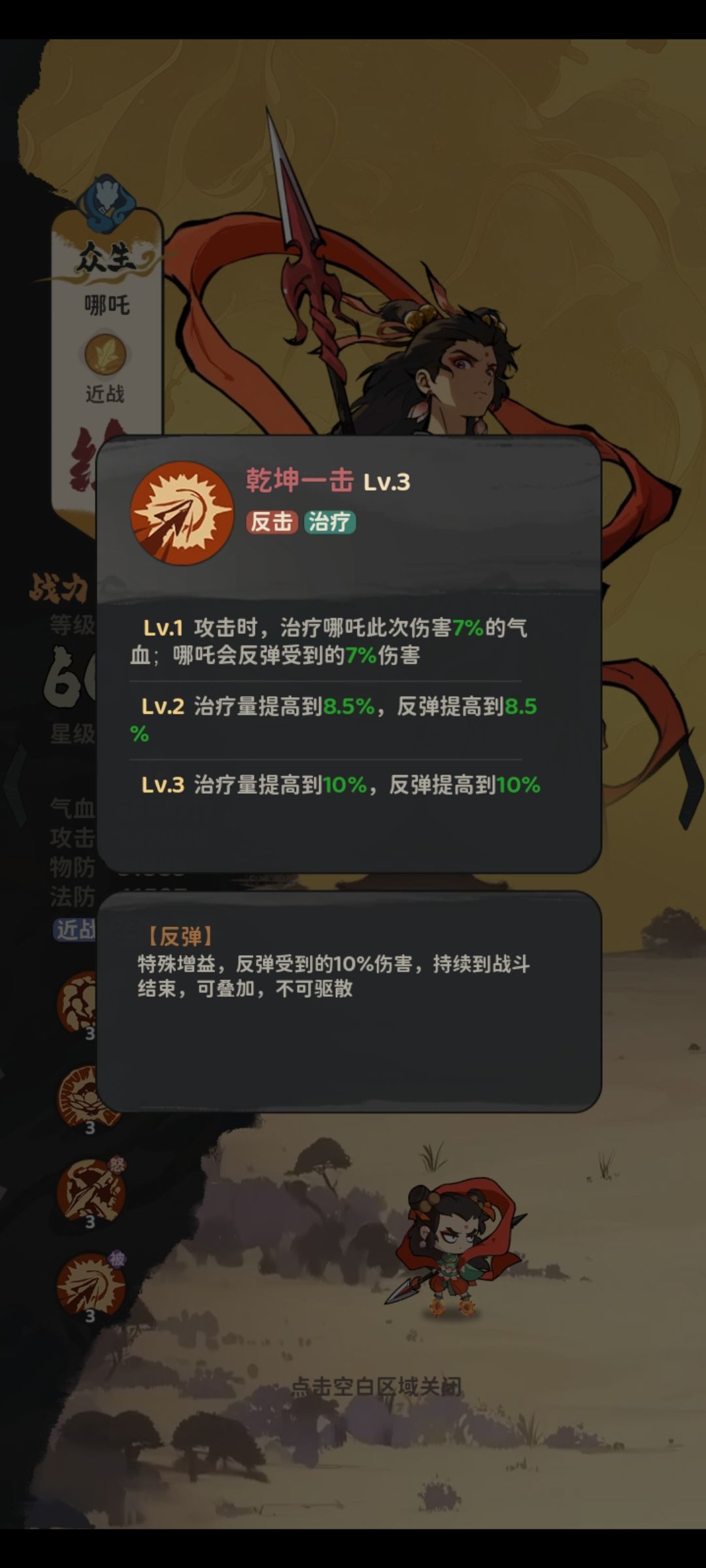 被动技能,常驻10%任意伤害吸血和10%反弹任何伤害,最强核心英雄被动技能,超强被动极限培养起来像一堵墙。
