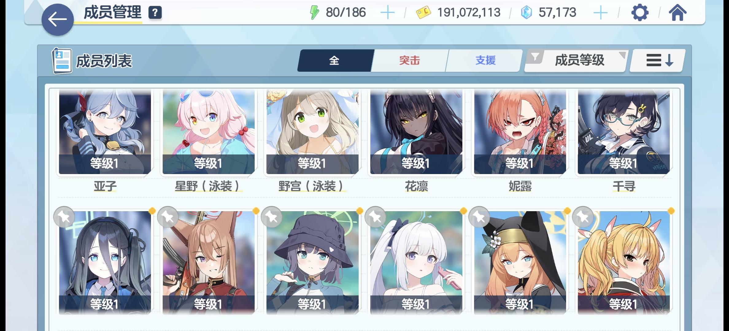 第一个十抽直接出彩中了爱丽丝,第二个十抽又出彩一看歌赫娜标志以为稳了结果来了亚子,第三次无彩,剩了6张单抽,去抽星野的池,本来只想把单抽用完,结果闪彩了,阿拜多的标志,又以为稳了结果是野宫泳装,补了四次单抽凑个40抽,又闪彩来了和香温泉,折回去抽日奈,50抽直接出,日奈有了又转星野的池,70.80抽出彩,130出彩,150拿下星野,想了下反正还有50抽,抽了算了,160.170.180.190,连出共5彩,我人都傻了,这泼天的富贵让我接到,请问大佬们,这13个角色有那些值得养的?