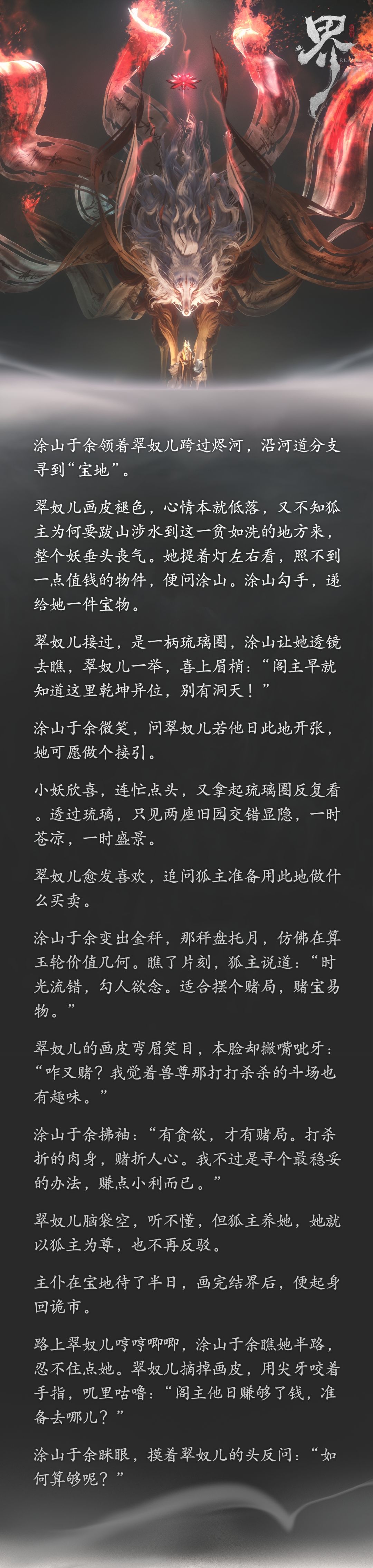 的记忆碎片登场,再度回到狐妖初至诡市那日,循着烬河的流水寻找隐匿的宝地!