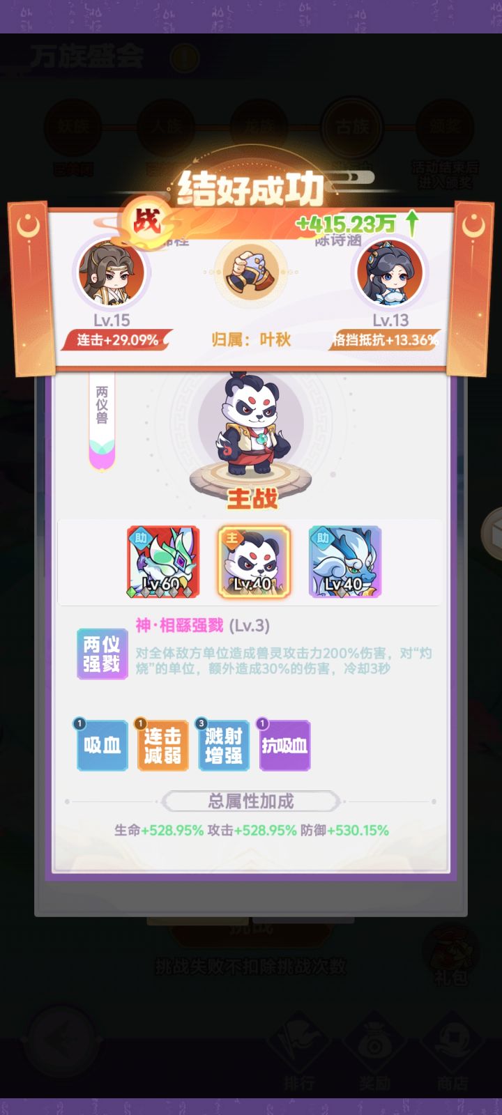 彩色升1级属性+0.15%,消耗初始300,150递增