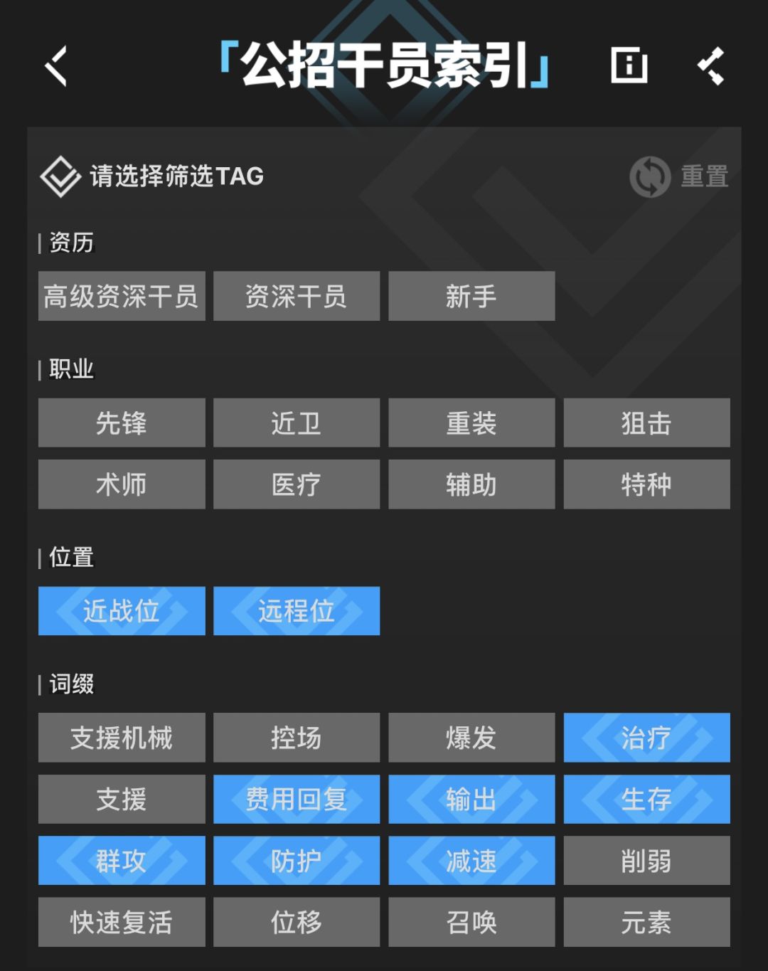 ▫️ 推荐每次公招都借助森空岛(app)的公招干员索引或者PRTS(网站)的公招计算功能等辅助查询工具来搜索出现的词条组合。