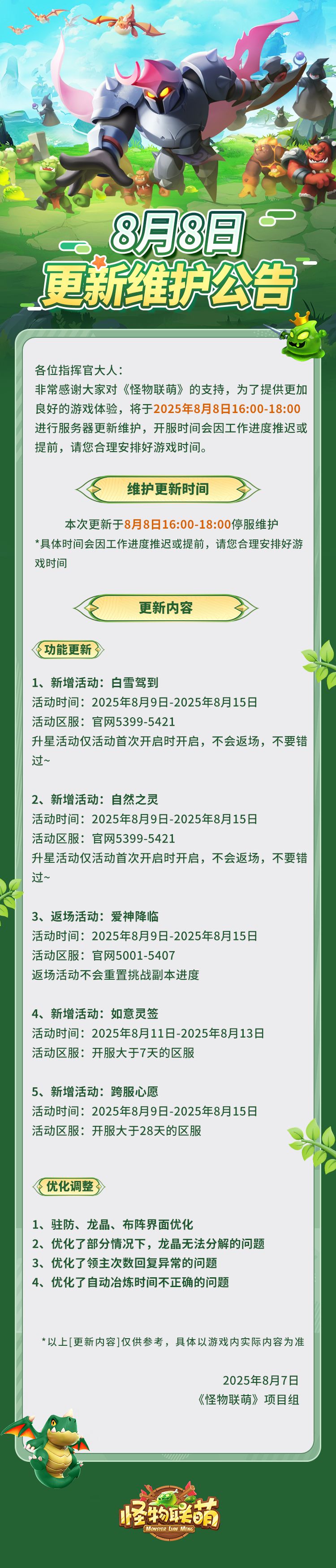 8月8日更新维护公告