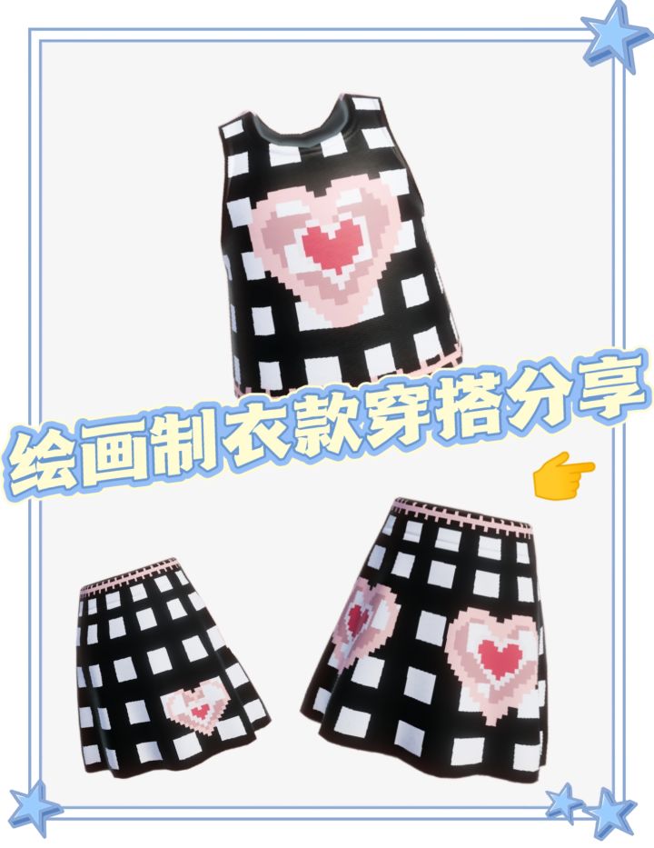 ✨分享一下今日设计的黑白格子➕粉色爱心💗的上衣和裙子,有没有你喜欢的穿搭呢