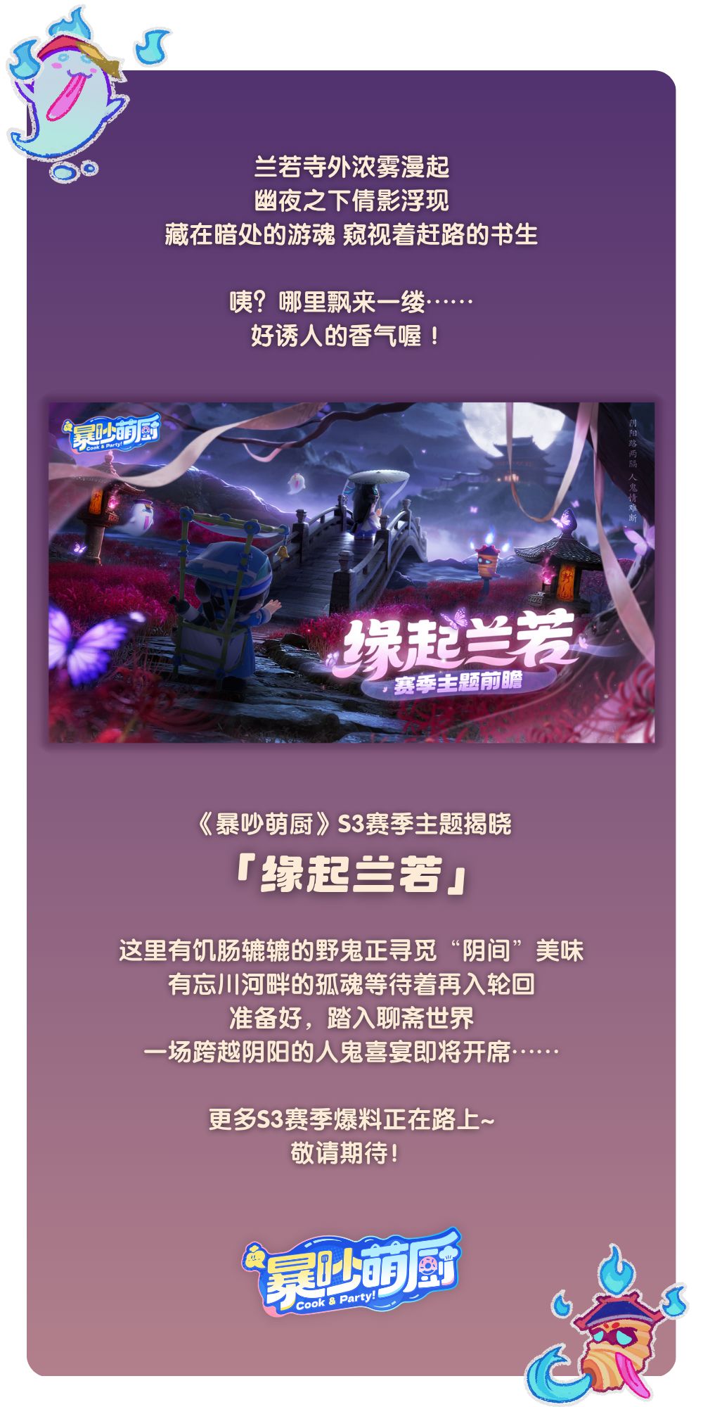 🌈👻有“鬼”出没请注意~欢乐厨房派对手游《暴吵萌厨》全新赛季「缘起兰若」即将上线, 后续更多爆料敬请期待!