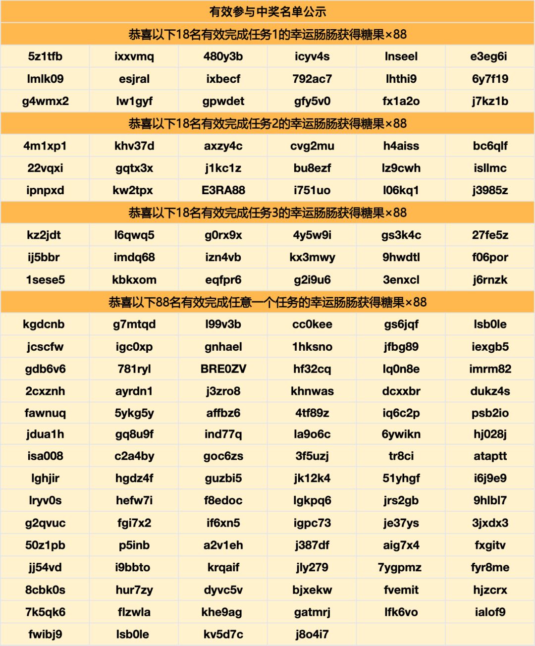 蛋卷将抽取88名有效完成任意一个八周年庆典任务的幸运肠肠送出八周年庆典礼物:糖果×88!