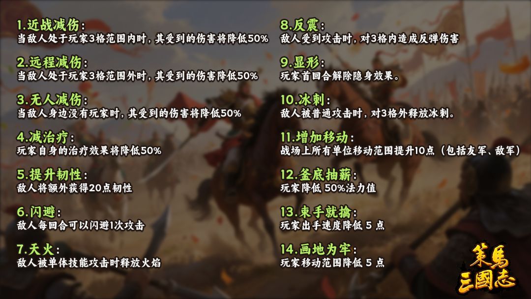 11.增加移动:战场上所有单位移动范围提升10点(包括友军、敌军)