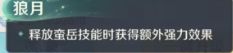 狼月状态下,会影响其他技能效果。2技能增伤、3技能追加1次攻击、4技能有追击效果、绝招可以溅射2个单位。进场会自带1回合狼月,绝招释放后会取消狼月状态。