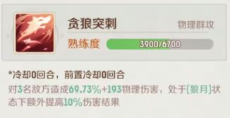 该技能的主要作用是单体攻击,并附加4回合狼月状态。无前置冷却,使用冷却2回合。