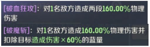 高速蛮岳处于全队甚至全场1速输出位置,其主要任务是优先击杀对方输出单位。所以蛮岳对特技数量要求不多,但是精。✨主要推荐:破血狂攻、破魔斩。破血是用于被控制后的输出,破魔是有针对性的消耗目标蓝量。