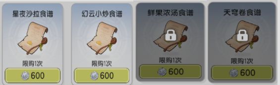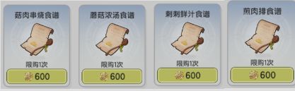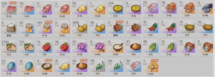 注意,也可购买少量采集食材,由于性价比极低,故省略