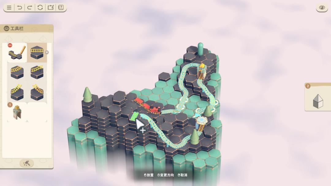 作为一款沙盒类游戏,首先场景是可以进行缩放、旋转等基本的操作管擦卡关的地形,在了解到关卡任务后,就要着手开始绘制火车轨道了。