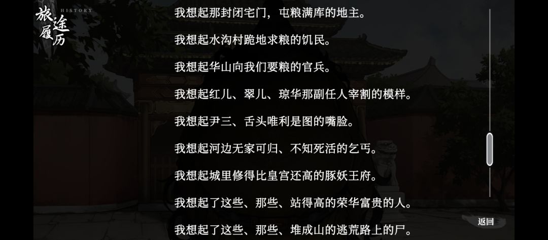 6.我觉得细节设计最绝的一点,主要两个大结局,分别是同生和共死,同生的触发背景是在主角喝醉的情况下并且睡着了醒了之后的情况下看到了满穗,很难不让人认为是梦,相反的是共死更为真实,这一块的设计,就好像是策划在告诉我,同生这个结局只是为了让你开心一下。你可以想象一下,乱世,天灾人祸层出不穷的时候,女主她怎么活过了9年?同生这个结局无非就是心中的一个念想罢了,无非就是放不下执念罢了……