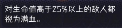 刺杀:[高于25%视为满血] [普通单位变3倍] [精英或首领变3倍] [击杀增伤20%] [击杀回2移动力]