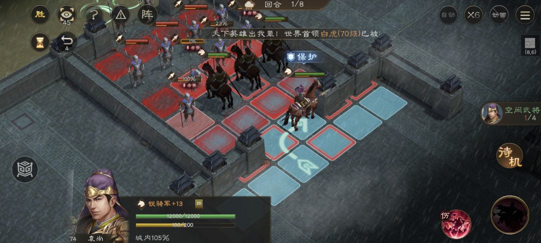 第三回合给门口的小兵推了。