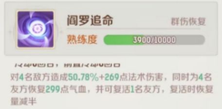 该技能的主要作用是快出手打击对面的残血目标,随机拉起我方倒地目标。无前置和使用技能冷却。如果采取加血型盘丝培养,该技能也会加血1400-1700不等。同期地府的加血量在2000左右。(摄魂天赋可以增加该技能的治疗量。)