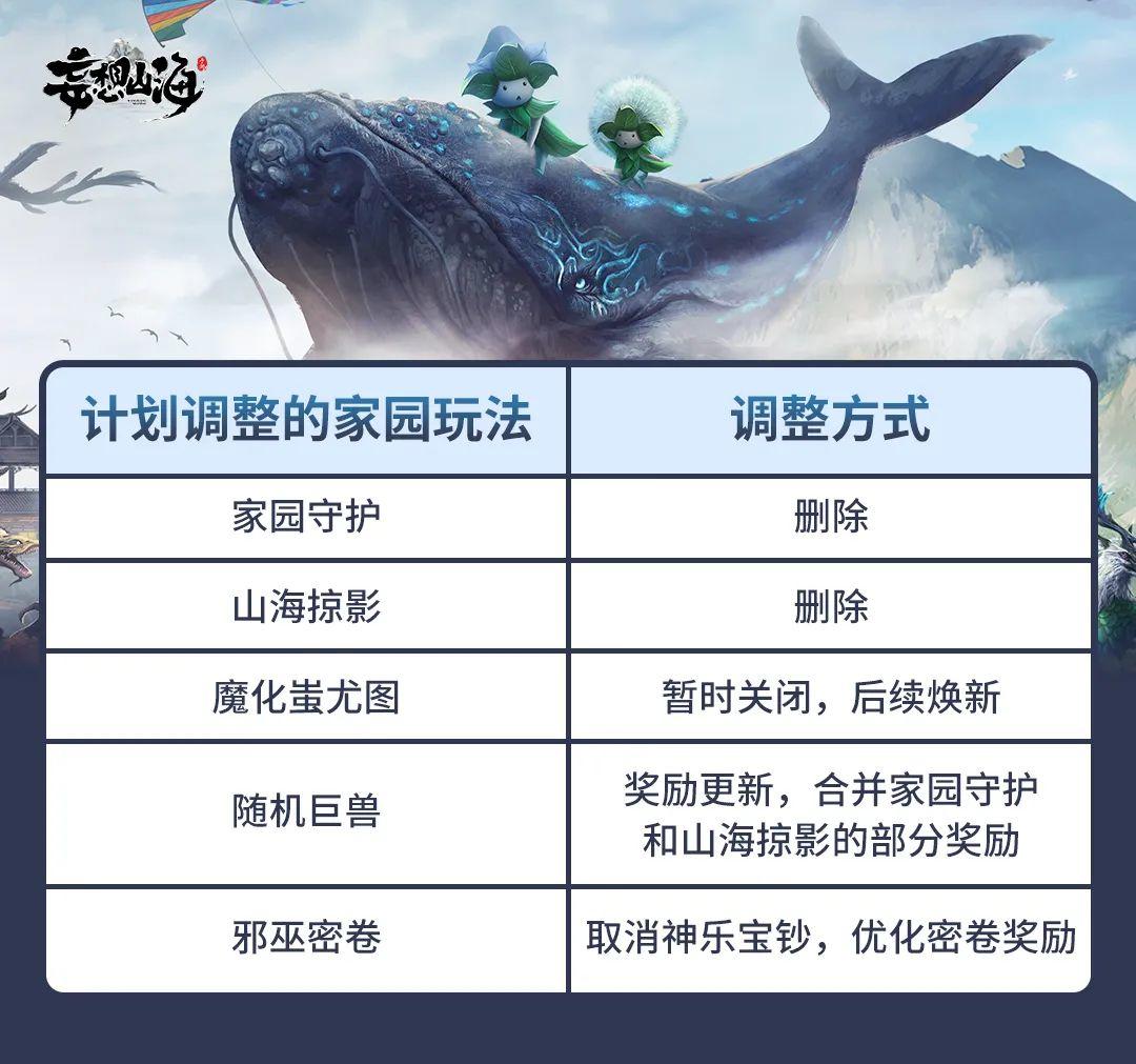 家园玩法中,部分玩法的乐趣性和体验已经落后,我们计划将其删除,部分奖励归入到其他玩法中,降低玩法的体验负担,或对其机制进行翻新,使其更具趣味性;
