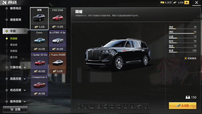 专属商店是高速对决玩法的核心枢纽,车辆、性能改装件、个性化外观配件,均可在商店购买。