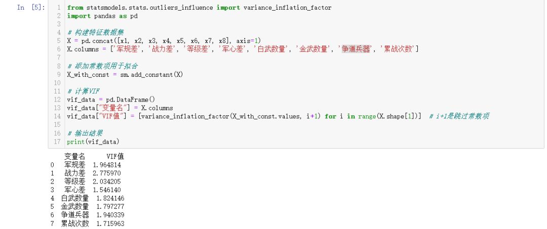 表2 删除武将数量变量后的VIF结果