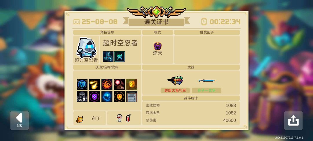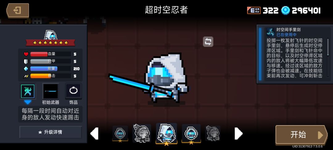 接下来介绍【时空能量】,武器进入关卡首次攻击回复两点(有内置CD,大概1-2s左右),接下来每次攻击回复1点。