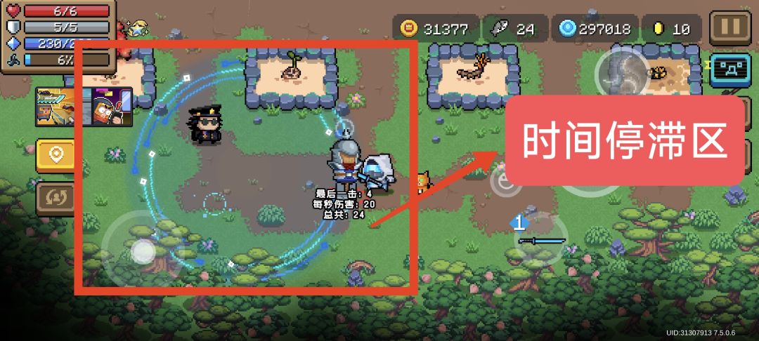 接下来介绍【时间停滞区】,只要敌人处在范围之类的,基本上就跟不攻击一样,子弹只要进入该区域,基本相当于时停效果。