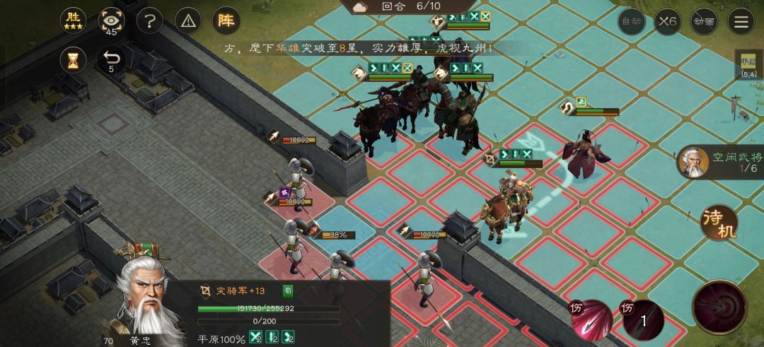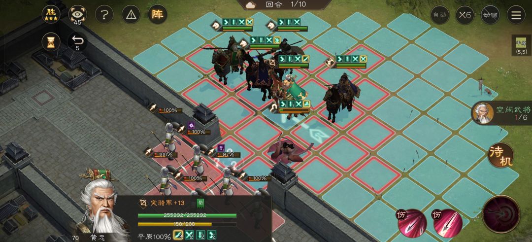 到第六回合华雄技能好了再去嘲讽第二排第一个小兵,站位如图这样小兵就打不到华雄了。