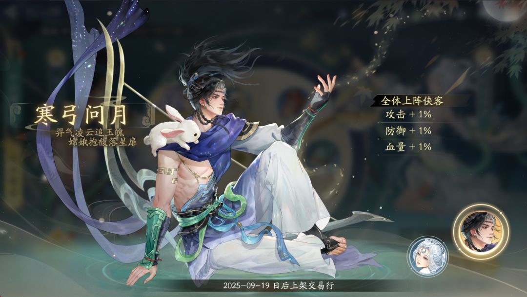 男形象:以中国古代神话传说嫦娥奔月的主人公——后羿为原型,设计专属形象——寒弓问月