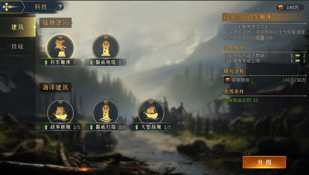 可以增加国家建筑和所属国家的NPC城池耐久提升;作为建筑向的技能,建议当我方战场倾向于开展防守策略时,进行研究升级;