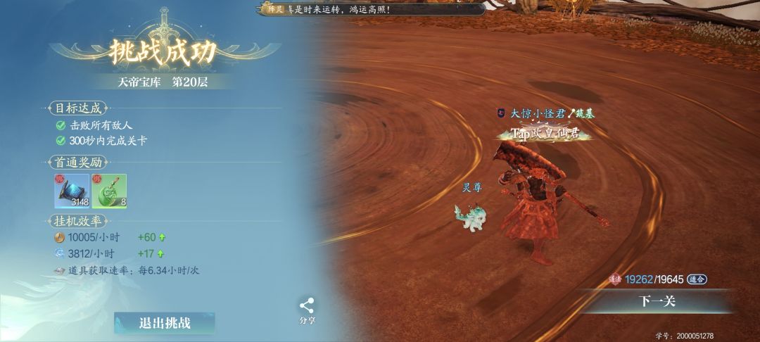 ✨3.天帝宝库10层以后可以后台自动,第20层打不过可以组队打,boss全屏大招只要跳起来就能躲了,该手动手动
