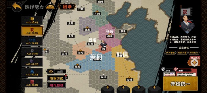 有:汉,开局sl存档,出会盟献城祝福,拿萧何韩信吕雉的这3个城池。挂机等名臣。平推天下
