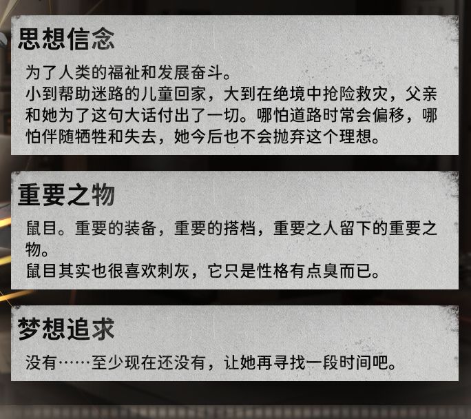 12岁时刺灰正式脱离社会,开始接受封闭式的特工训练。从那以后任何娱乐就和她没关系了。