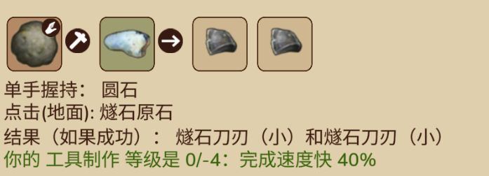 ②将枯枝放在地上后,手上需要拿着燧石刀刃点击地上的枯枝进行交互。即使制作失败也可以继续点击直到制作完成。