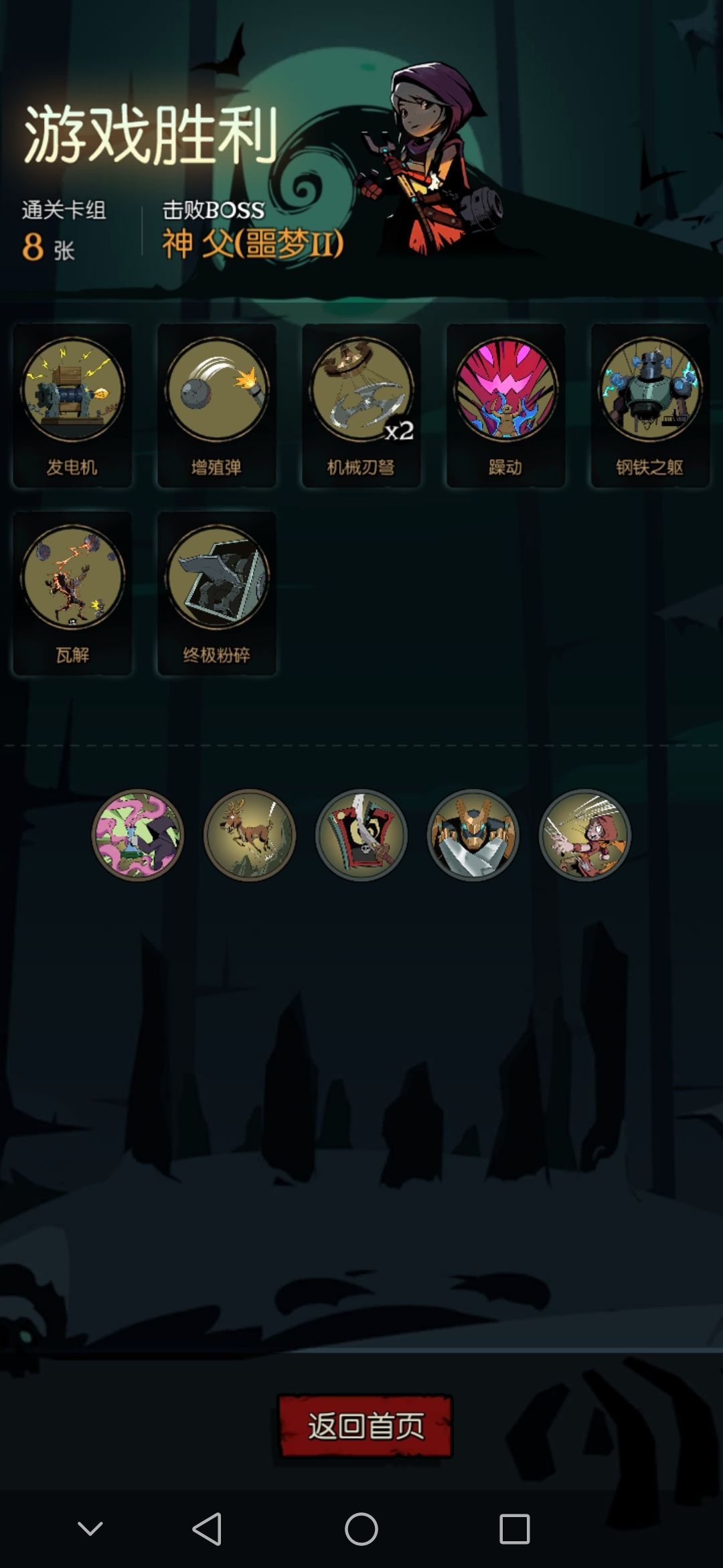 打到这里就会发现血量有点扛不住,所以需要补一张钢铁之躯,行动力+1点再*5的护甲,足够撑两轮了![[嗒啦啦2_期待]](https://img-tc.tapimg.com/market/images/4586b6e33f74e054079a0d9aaed70aee.gif)