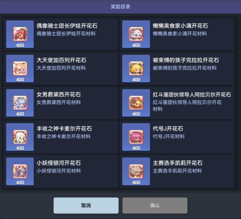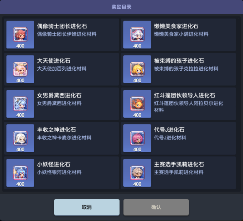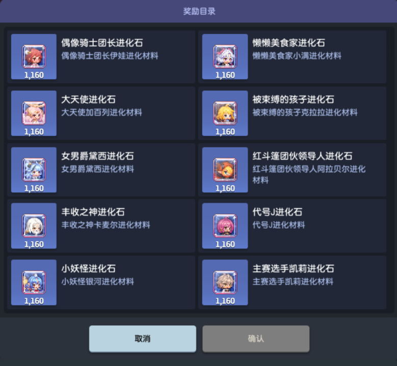 可选栏位:2个(英雄进化石*1160、英雄开花石*400)