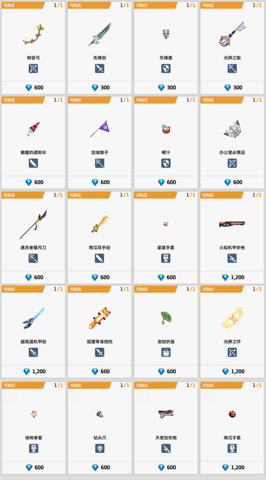 装备外观:树苗弓、先锋剑、先锋盾、光阴之匙、魅魔的遮阳伞、加油旗子