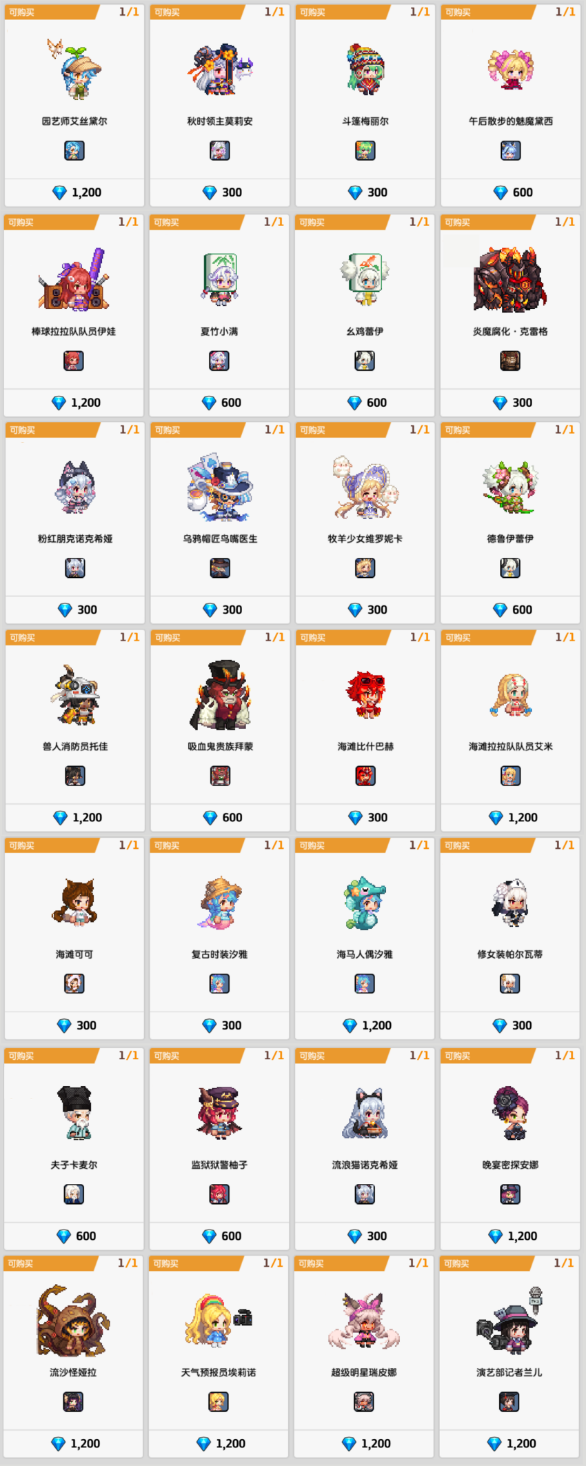 英雄时装:园艺师艾丝黛尔、秋时领主莫莉安、斗篷梅丽尔、午后散步的魅魔黛西、棒球拉拉队队员伊娃