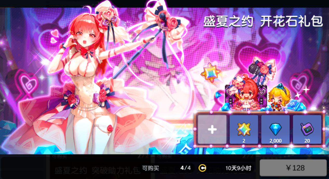 盛夏之约 开花助力道具包:英雄水晶*700、祝福之书*50、经验结晶*2000w