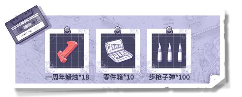 ♦ 礼包内容:一周年蜡烛*18、零件箱*10、步枪子弹*100