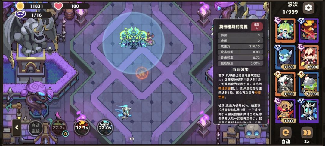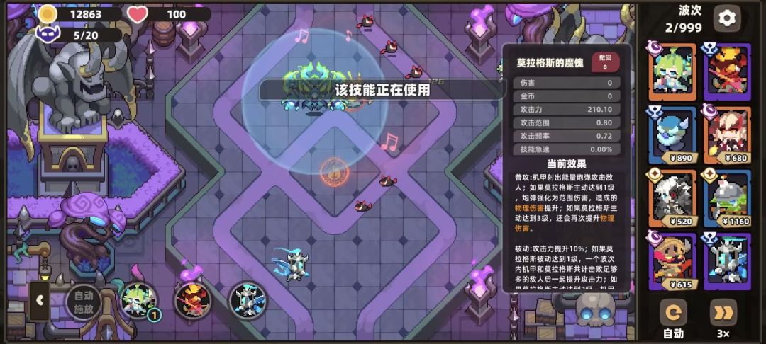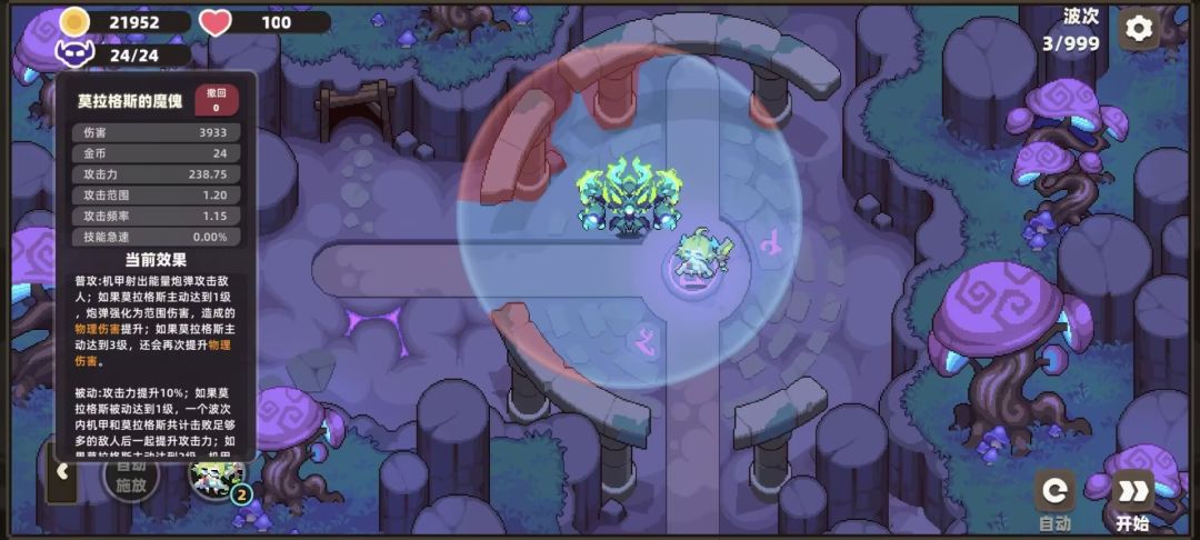 主动技能,召唤机甲协助作战,攻击附带小范围伤害,提升攻击范围以及攻频,三级之后可额外召唤一个机甲