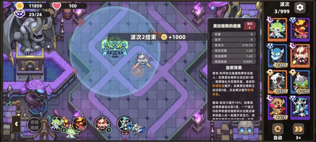 小莫的普攻,以双枪对一名敌人造成4次伤害,但由于伤害问题,群体魔物一多,导致伤害不够