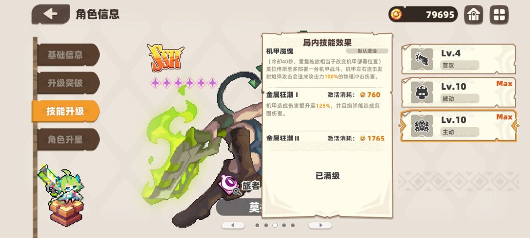 小莫被动,提升自身以及机甲伤害,击败敌人也会获得额外攻击,是小莫必提升的技能