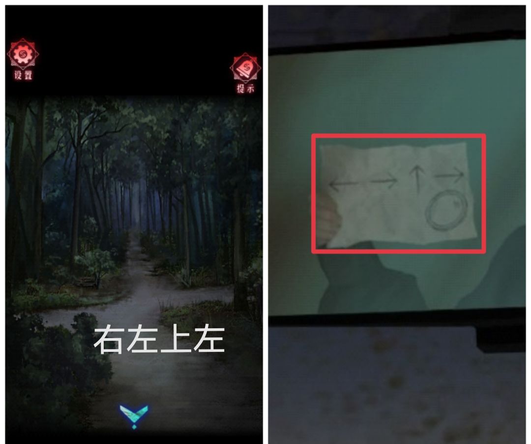 28.进入树林,根据通过内后视镜看到的纸条上的线索,选择正确的岔路口,走出树林