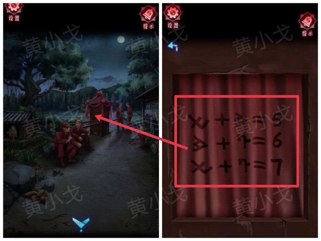 25.根据轿帘上的符号等式和嫁娶事宜上的线索,按顺序和次数点击锣和唢呐