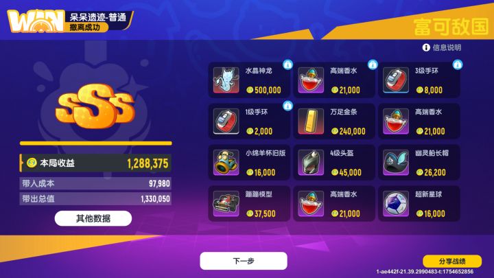 然后呢如果你把对面噶了,你就清图啦。你只用去搜整张图的白银锁链宝箱,还有空投哦,你再去搜其他的小玩意儿纯属浪费时间,就失去了玩此图的“时间快”这一原理,搜完后就带着你的大红香香撤离吧!