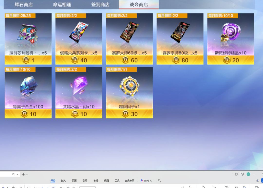 最后一个战令商店的话还是卡包和超限因子优先,如果还有多余的代币的话其他的道具都可以换的